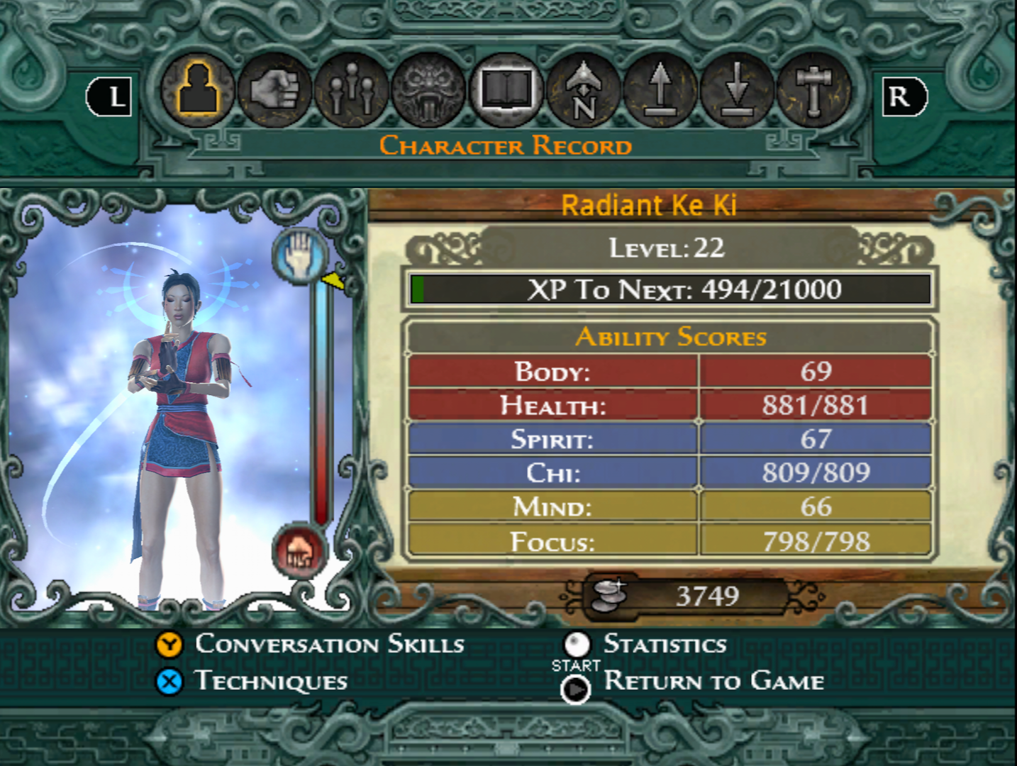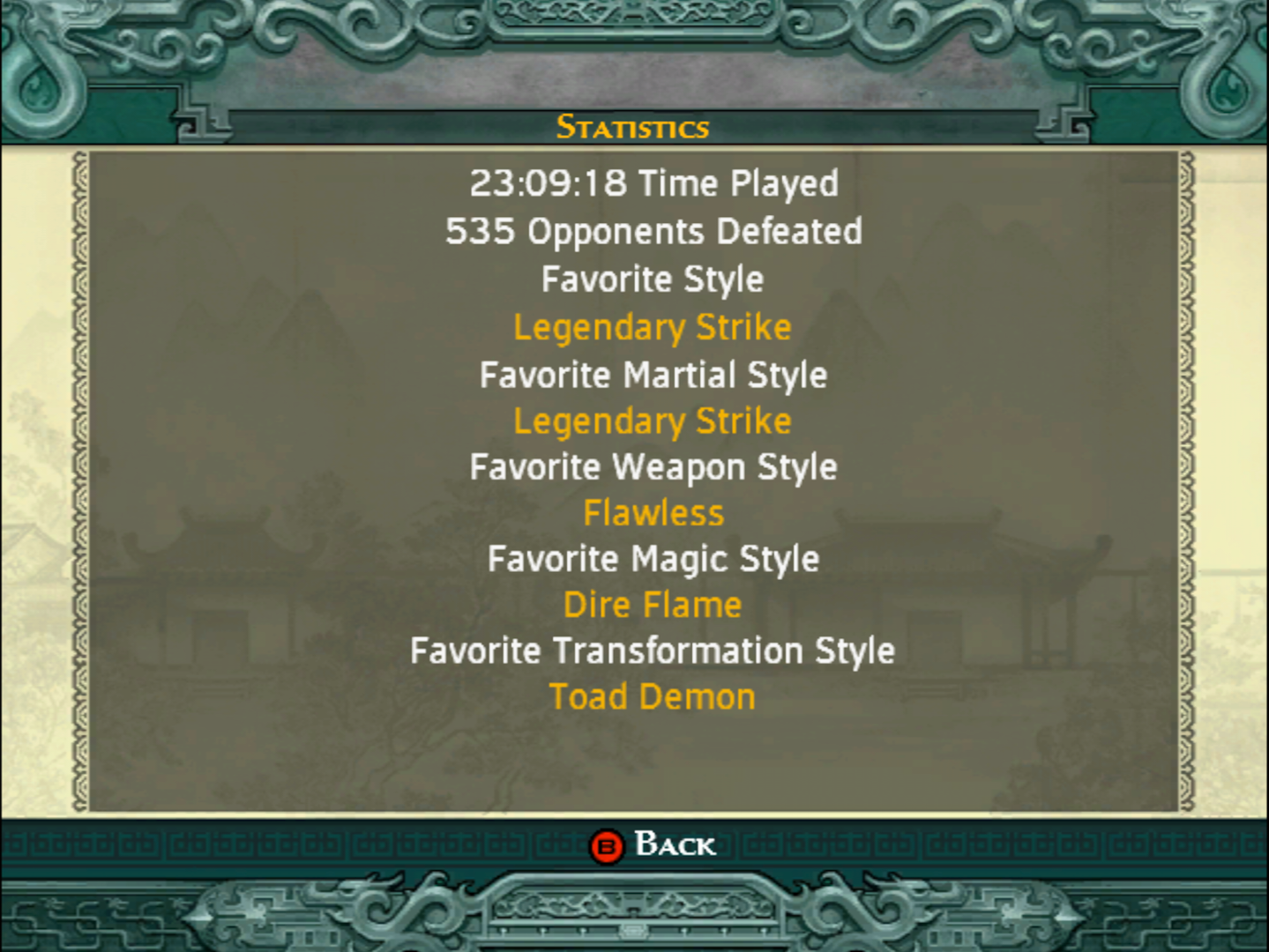 Final stats dar jocul minte, arma mea favorita e dual sabers (crimson tears) si transformation e golem. Nu prea am folosit magic styles.